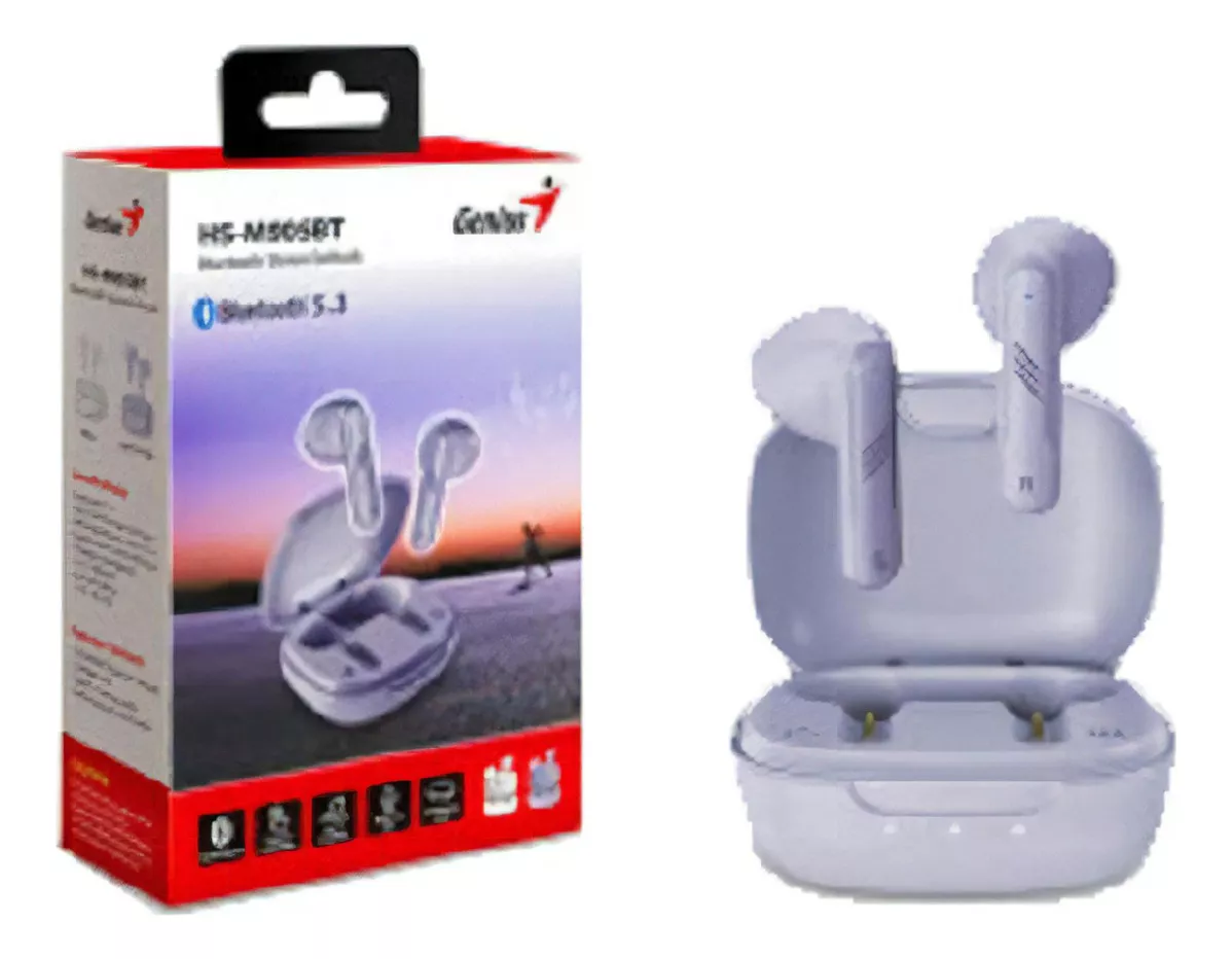 Auricular Bluetooth (TWS) Genius HS-M905BT: Conexión rápida y estable con reducción de latencia y anti interferencia mejorada, brinda 4 horas de música continua con gestión de llamadas sin problemas. Con la comodidad de uso disfrute del audio en alta calidad con bajos enriquecidos Disponibles en 3 colores: Negro / Blanco / Morado Claro.