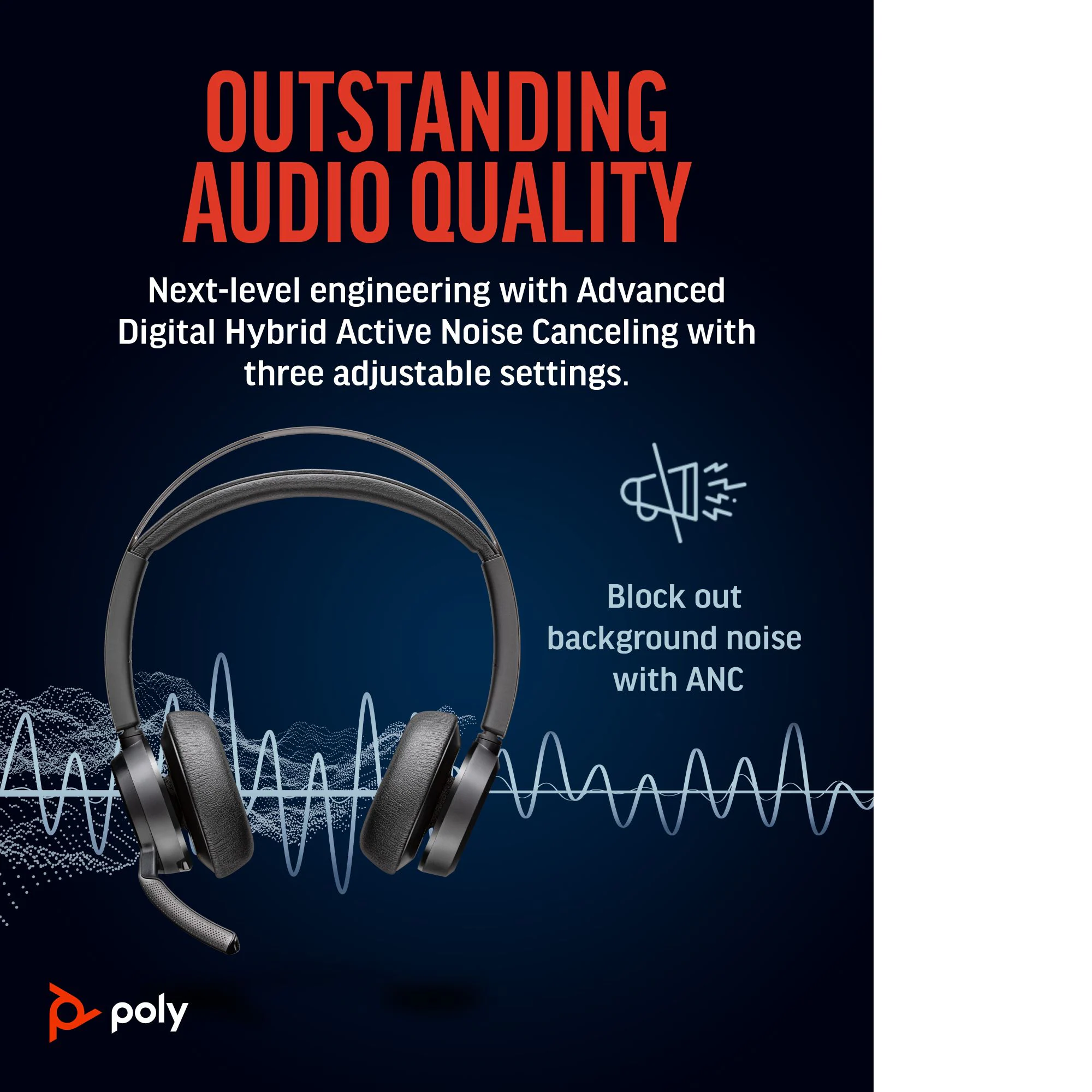 Experimente la excelencia acústica de Poly con los auriculares Voyager Focus 2. El ruido de fondo y las distracciones se reducen con tres niveles de cancelación activa de ruido (ANC) híbrida digital avanzada. Estará listo para mantener las conversaciones más importantes con confianza.